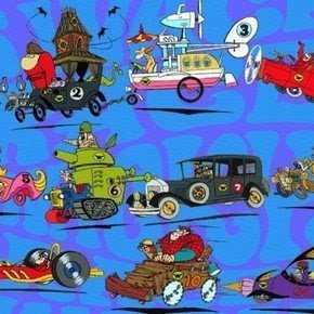 Claro que los dibujitos animados expandieron el universo de acuerdo a las posibilidades que da la animación. Cada uno de los once vehículos participantes tenía un diseño particular, y estaban piloteados por personajes con características únicas. Algunos de ellos tenían un solo piloto, otros dos y hasta había un auto con siete tripulantes.