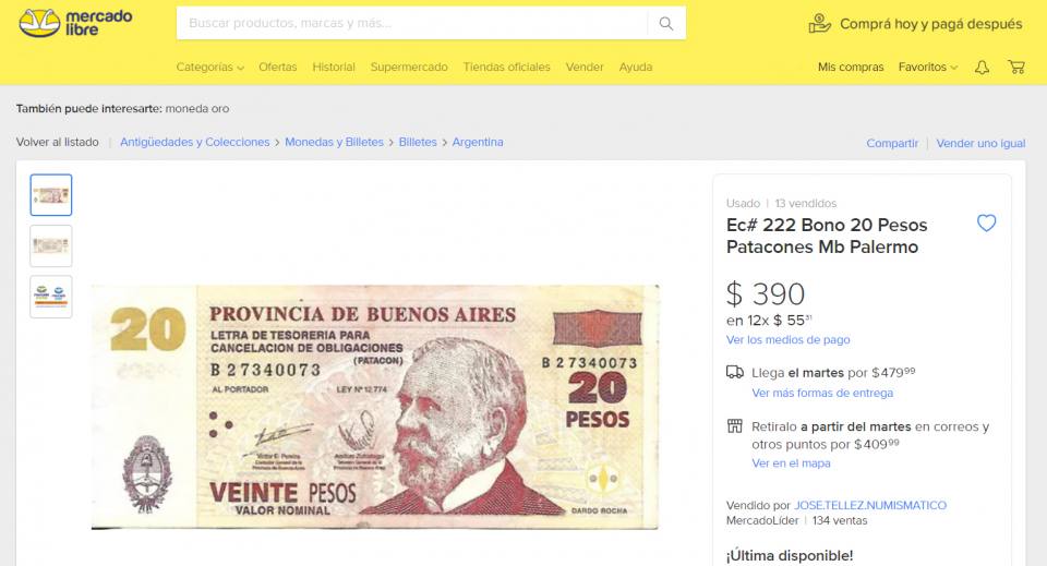 Hoy, 20 años después algunos billetes por sus características y dependiendo del estado, son buscados por coleccionistas. Así las cosas, en Mercado Libre hay Patacones de $20 ofrecidos por un valor cercano a los $400 y en algunos casós más.