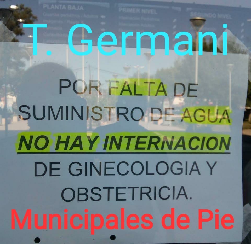 En la imagen viralizada por el grupo «Municipales de Pie Oficial» se ve claramente el mensaje: «Por falta de suministro de agua NO HAY INTERNACIÓN de ginecología ni obstetrícia».