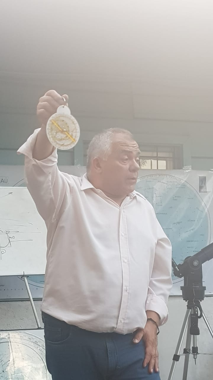 El anfitrión fue Adolfo Martín (Churro), delegado municipal de Ciudad Evita quien recibió al disertante Constantino Baikouzis (Costa), investigador astronómico y futuro director del observatorio astronómico de La Matanza, quien dio una clase magistral.