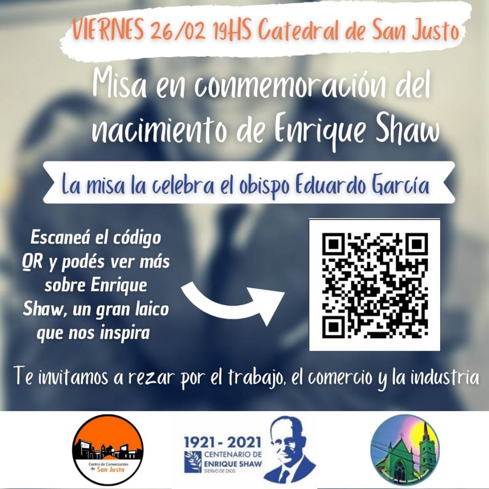 El Centro de Comerciantes de San Justo invita a la comunicad a una Misa, en la Catedral de San Justo, partido de La Matanza, con motivo de la conmemoración por el centenario del nacimiento de Enrique Shaw.