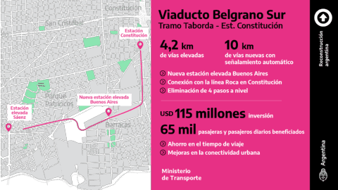 Con el objetivo de «mejorar la calidad, seguridad y rapidez del servicio», la cartera de Transporte anunció que en los próximos días se concretará la firma del contrato para el pronto inicio de la obra, que fue adjudicada a la empresa Dycasa S.A., por parte de la Subsecretaría de Gestión Administrativa del Ministerio de Transporte, a cargo de Julio Roca.