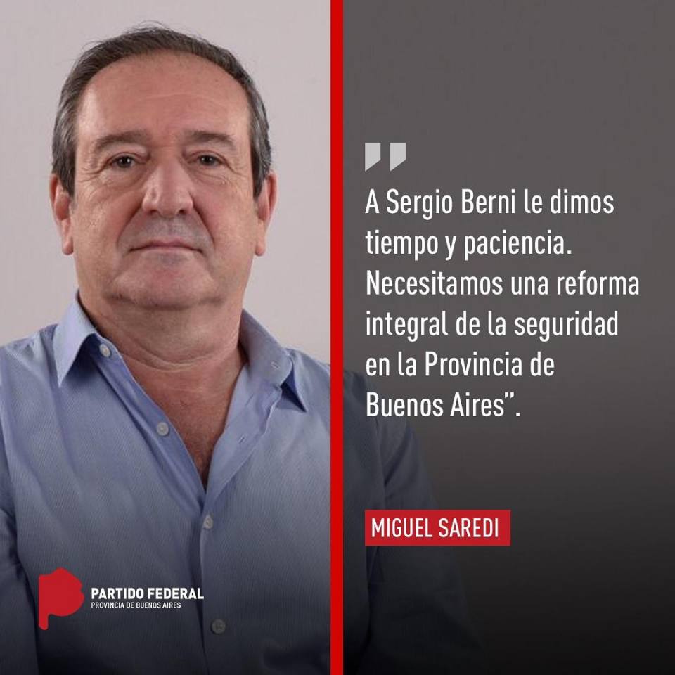 El Dr. Miguel Saredi, presidente del Partido Federal de la provincia de Buenos Aires expresó: «Apoyar a nuestros vecinos de Ramos Mejia, estar presentes buscando a la nena desaparecida en Rafael Castillo, como así también; acompañar a los vecinos de Villa Luzuriaga en un nuevo reclamo de seguridad, son situaciones impostergables, para cualquier vecino o dirigente de La Matanza«.