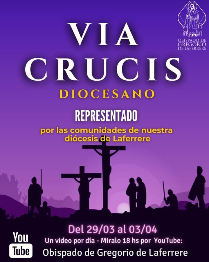 Cada día, a las 18:00 hs. compartirán un video con distintas estaciones del Vía Crucis, que fueron representadas por algunas comunidades de la diócesis de Laferrere para ayudar a rezar desde casa en este tiempo de pandemia.