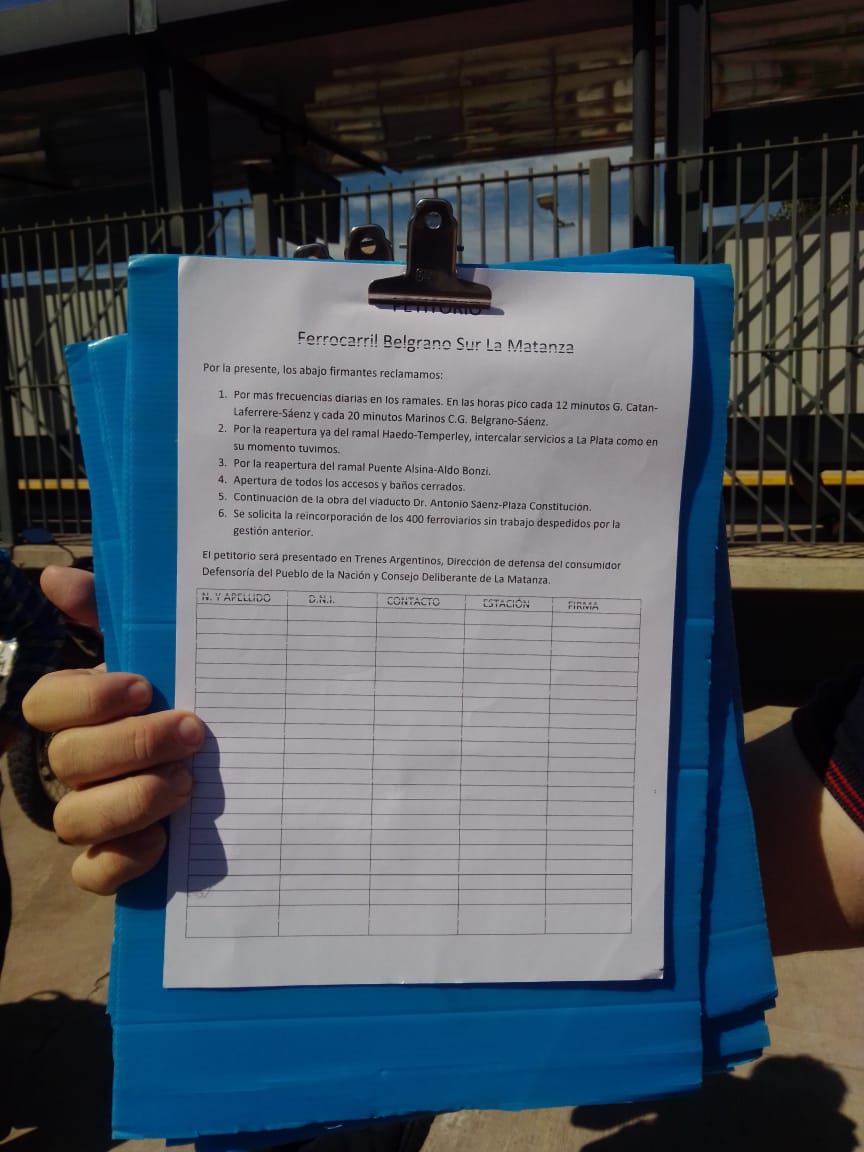 El día de hoy en horas del mediodía y por la tarde, se realizó en la estación Laferrere y González Catán una juntada de firmas y difusión realizada por la asociación civil Salvemos al Tren, donde estuvo presente la Juventud del Partido Federal con Thomas Rodriguez.