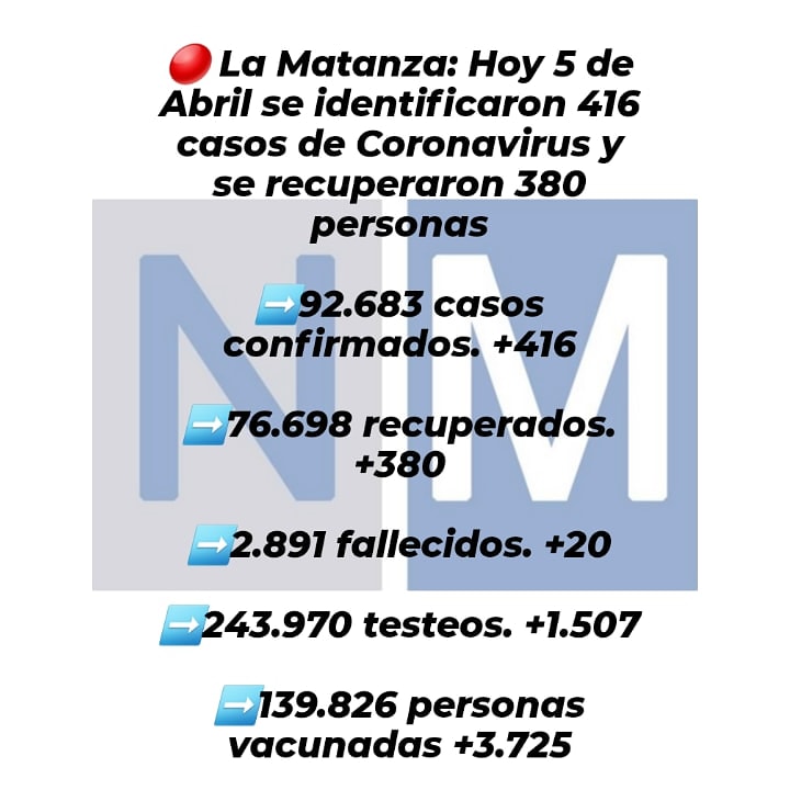 A CONTINUACIÓN COMPARTIMOS LOS DATOS DE CORONAVIRUS DEL DÍA 5 DE ABRIL: