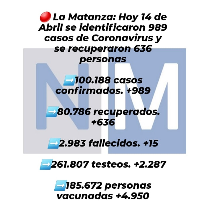 A CONTINUACIÓN COMPARTIMOS LOS DATOS DEL DIA 14 DE ABRIL EN LA MATANZA: