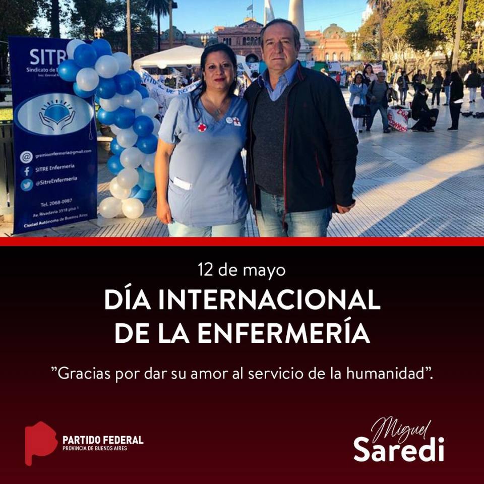 El Dirigente Provincial del Partido Federal, Dr. Miguel Saredi se refirió al día internacional de la Enfermería: «El enfermero/a es quien se carga al hombro el cuidado de los enfermos. Es el que durante las 24 horas pone el cuerpo para combatir la pandemia del coronavirus».