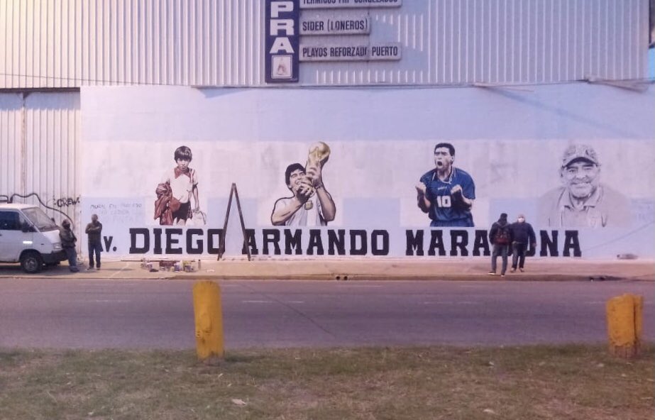 Sobre un paredón ubicado en Camino de Cintura y Don Bosco, semanas atrás artistas locales habían pintado un gran mural en homenaje a Diego Maradona. La sorpresa y la indignación llegó hoy cuando el mural fue tapado por una pintada política “Valeria Mottard 2021”.