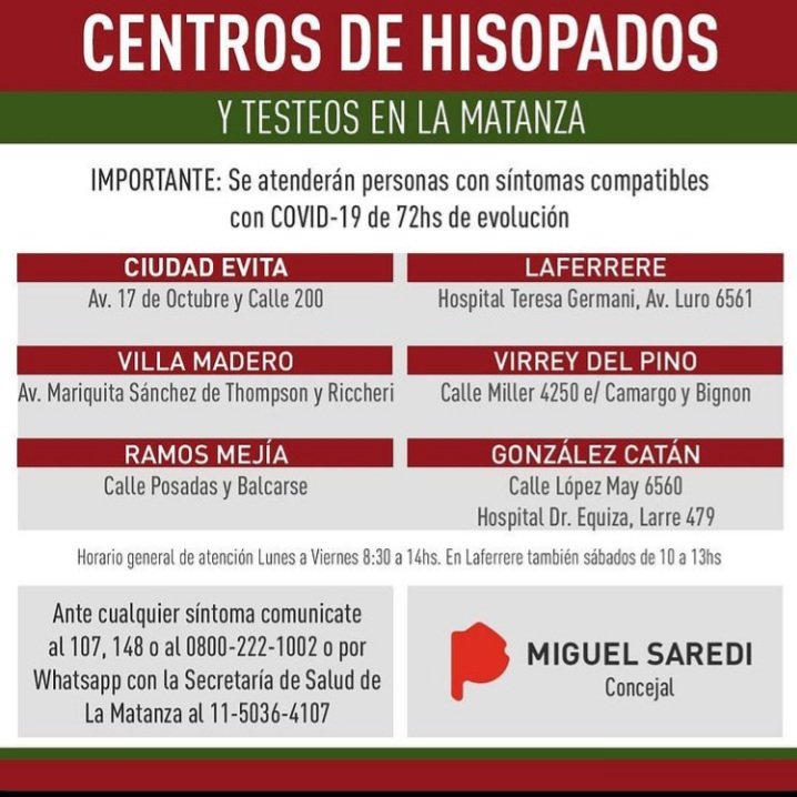 CENTROS DE HISOPADOS Y TESTEOS EN LA MATANZA: