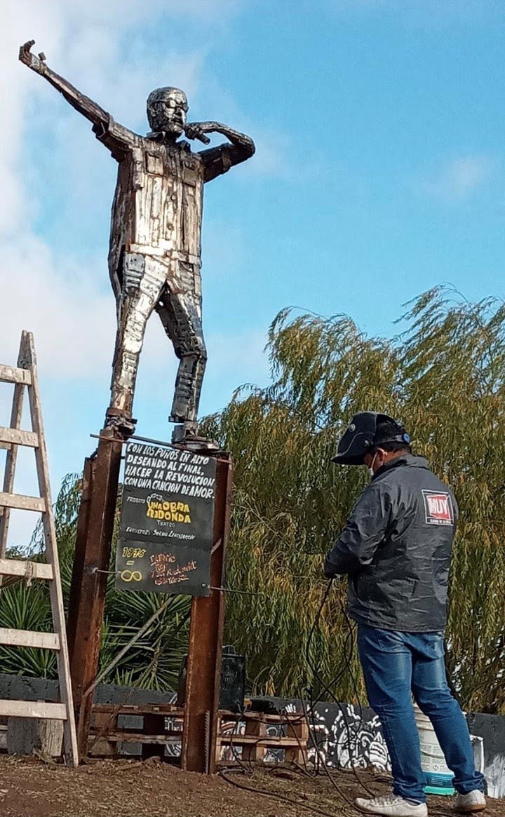 La escultura fue levantada por el artista local Sergio Leguizamón y el trabajo se realizó en conjunto con el elenco artístico «Una obra redonda», con una consigna: que la figura hecha con chatarra donada por la gente tuviera 1,67 metro, la altura real del legendario cantante, que en enero de 2021 cumplió 72 años.