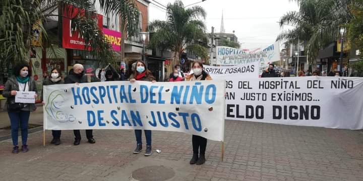 Los manifestantes disidentes al sindicato de los Municipales resaltaron los bajos sueldos cobrados por los trabajadores de salud del municipio: «Un médico con 20 años de antigüedad puede tiene un básico de $12.500 y la mayoría gana alrededor de $30000». Se habló también de las condiciones de trabajo en pandemia, y recordaron a sus compañeros que perdieron por culpa de la misma