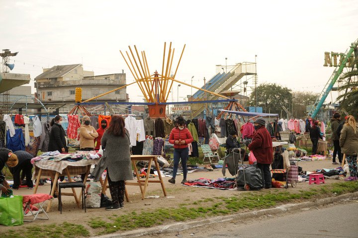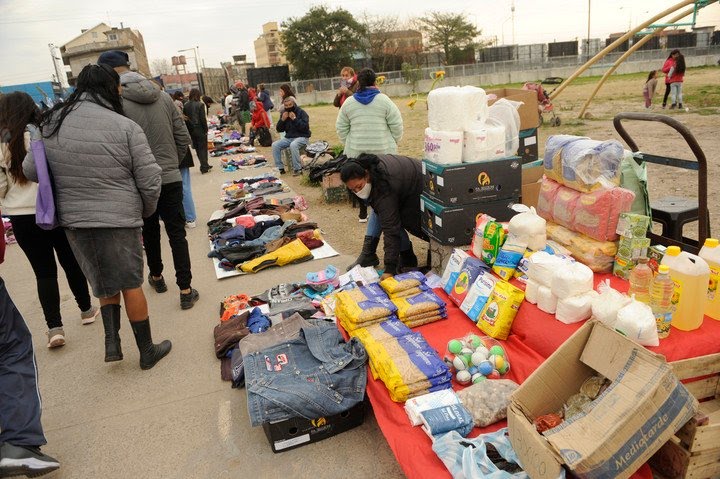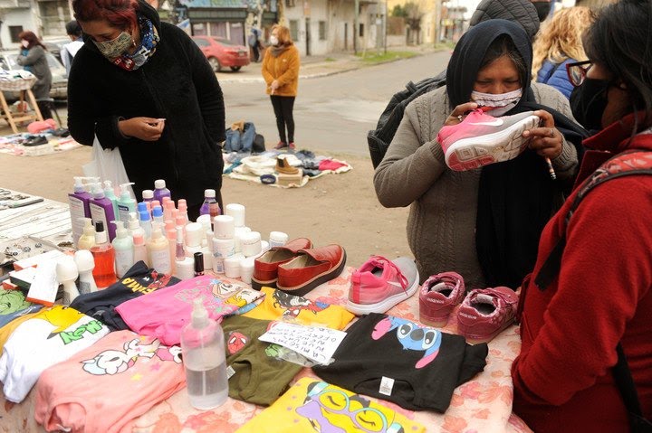 En la feria que se arma en la calla Comodoro Py, en Laferrere, manda el trueque. No hay efectivo.