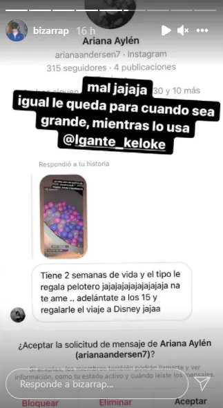 Sin embargo, una usuaria le marcó que no era un regalo apropiado para la edad de la niña, y a modo de chiste le insinuó si ya no quería ir comprándole también el regalo de los 15.