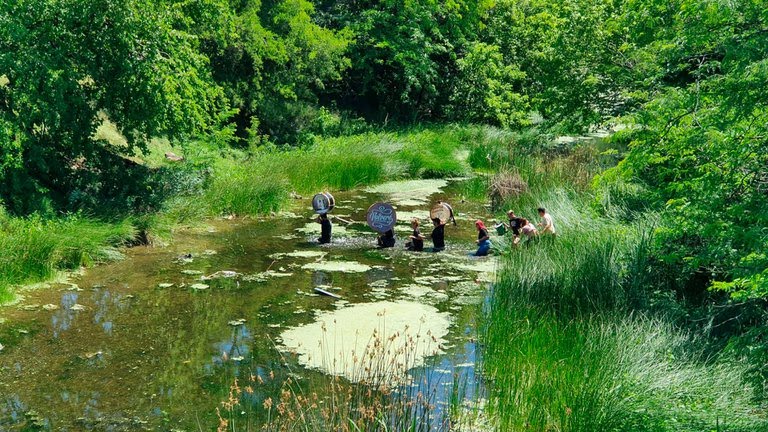 Son de un centro cultural de Cañuelas y su acción fue para emular la de las columnas que el 17 de noviembre de 1972 fueron a recibir a Perón a Ezeiza y debieron vadear el río porque el corte de la autopista Richieri les impedía el paso