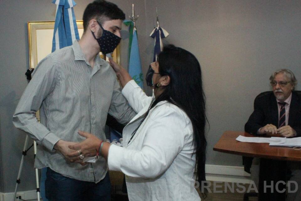 La Presidenta del HCD Liliana Pintos junto al Secretario del cuerpo Sergio Landín, recibieron en el recinto a los concejales y sus familiares, para rendir homenaje a los ediles que dejaban sus bancas por cumplirse el periodo de 4 años de mandato, y a los nuevos ediles que ejercerán el mandato 2021-2025.