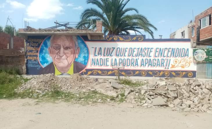 La obra fue realizada en la esquina de Buenos Aires y Tarija, en donde René llevó a cabo gran parte de su labor comunitaria. “La luz que dejaste encendida nadie la podrá apagar”, reza la intervención artística que fue acompañada con una imagen del rostro del referente.