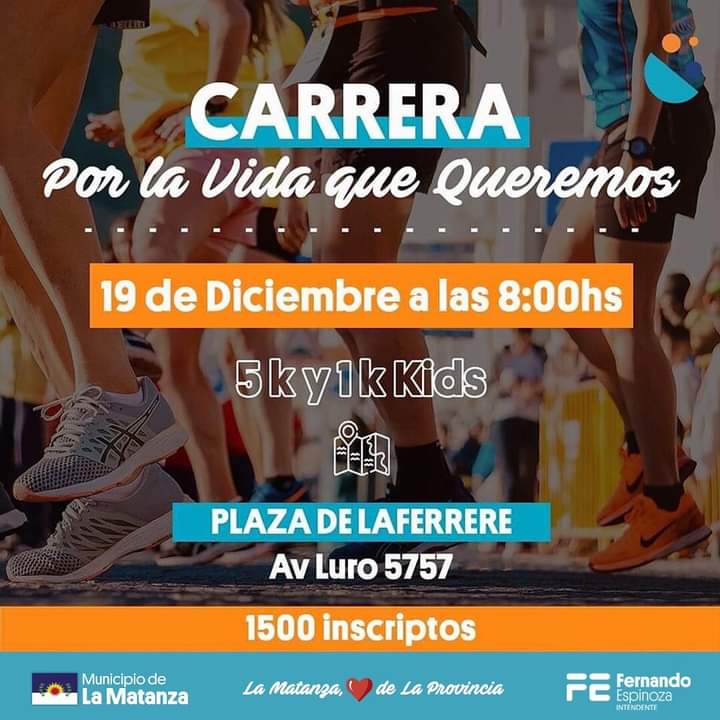 La Secretaría de Deporte y recreación del Municipio de La Matanza invita a los vecinos a participar de la maratón “Por la vida que queremos” que se realizará el próximo domingo 19/12 a las a 08:00hs en Av. Luro 5757, Plaza de Laferrere