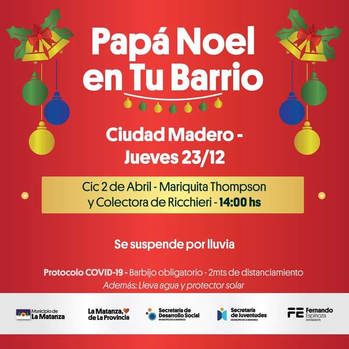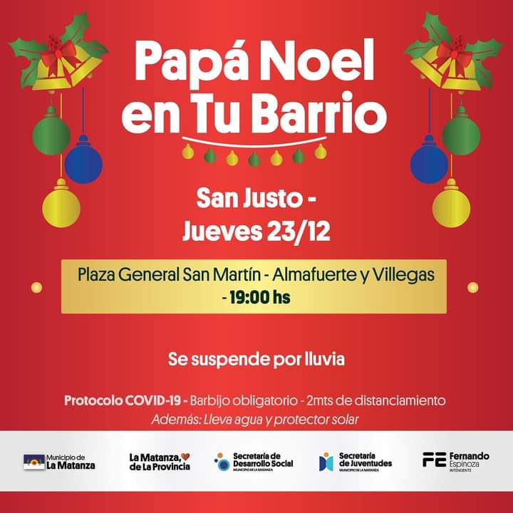 Hoy en La Matanza se vivirá una tarde magica, ya que papá Noel recorrerá en caravana las calles del distrito, acompañado de autobomba y patrulleros.