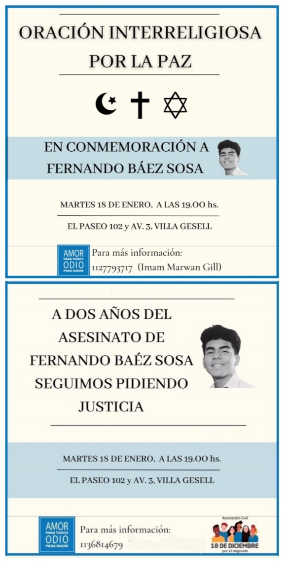 Los padres de Fernando, Graciela Sosa y Silvino Báez, organizan junto a la ONG 18 de diciembre por el Migrante (@ONGPorElMigrante) y la Comunidad Musulmana Ahmadía (@ahmadia.arg), una misa interreligiosa para transmitir un mensaje de paz y hacer un pedido de justicia.