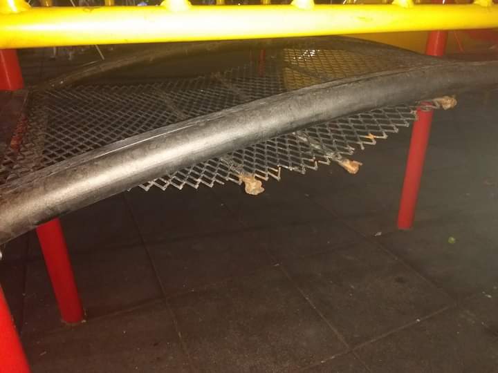 Sucede que el piso de la cúspide del tobogán no está soldado y deja un borde que funciona como cerrucho y que puede ocasionar una tragedia.