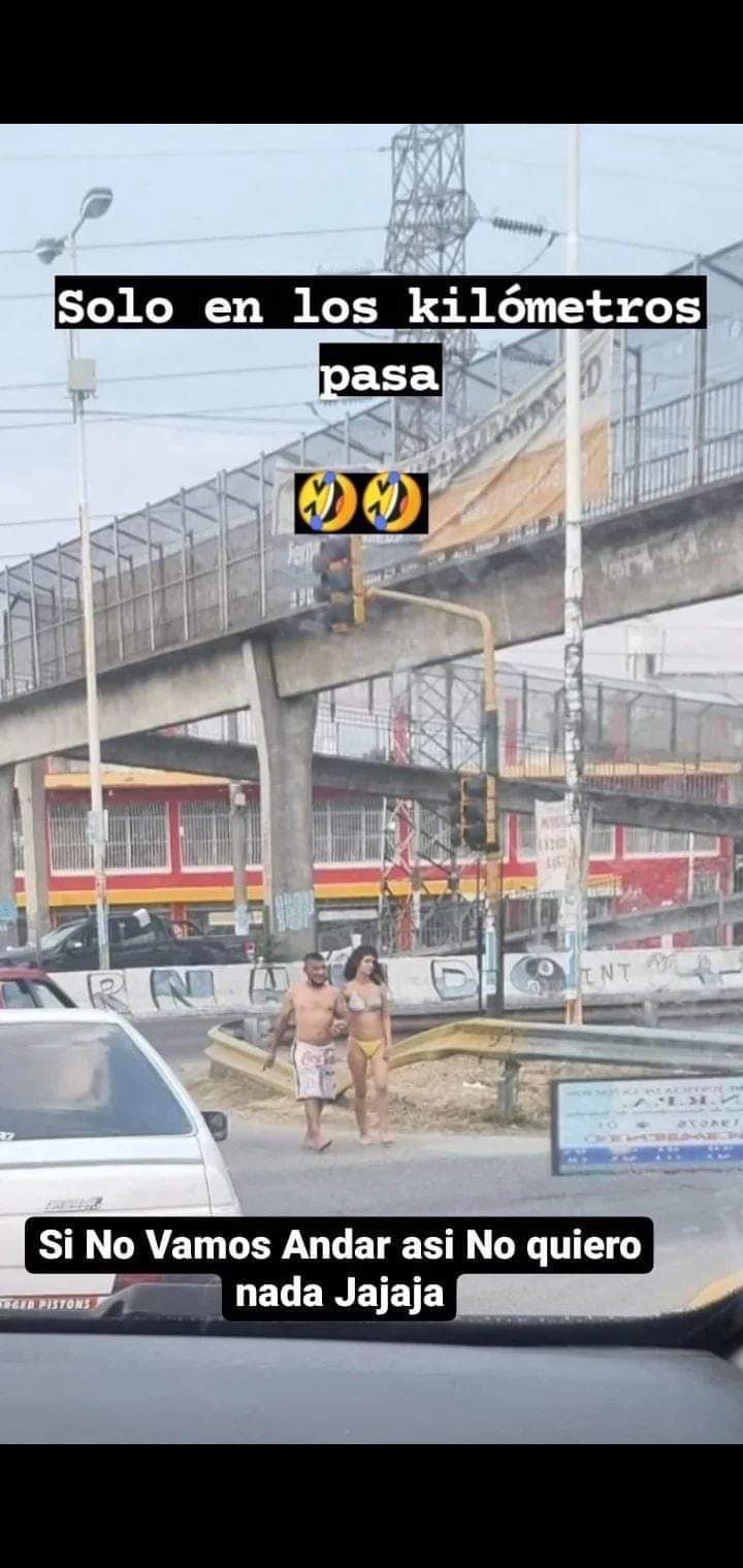 En las últimas horas se hizo viral una imagen de una pareja en traje de baño, caminando por la ruta 3 a la altura del cruce de Matienzo, localidad de González Catán, partido de La Matanza.
