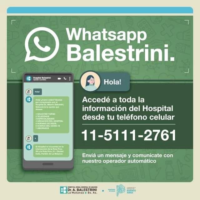 A partir de ahora los vecinos podrán solicitar turno por WhatsApp para las diferentes especialidades médicas, y tener información sobre los distintos servicios que brinda el Hospital Balestrini.