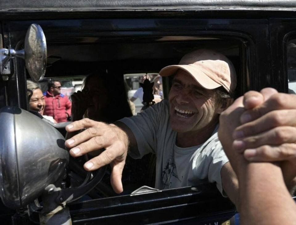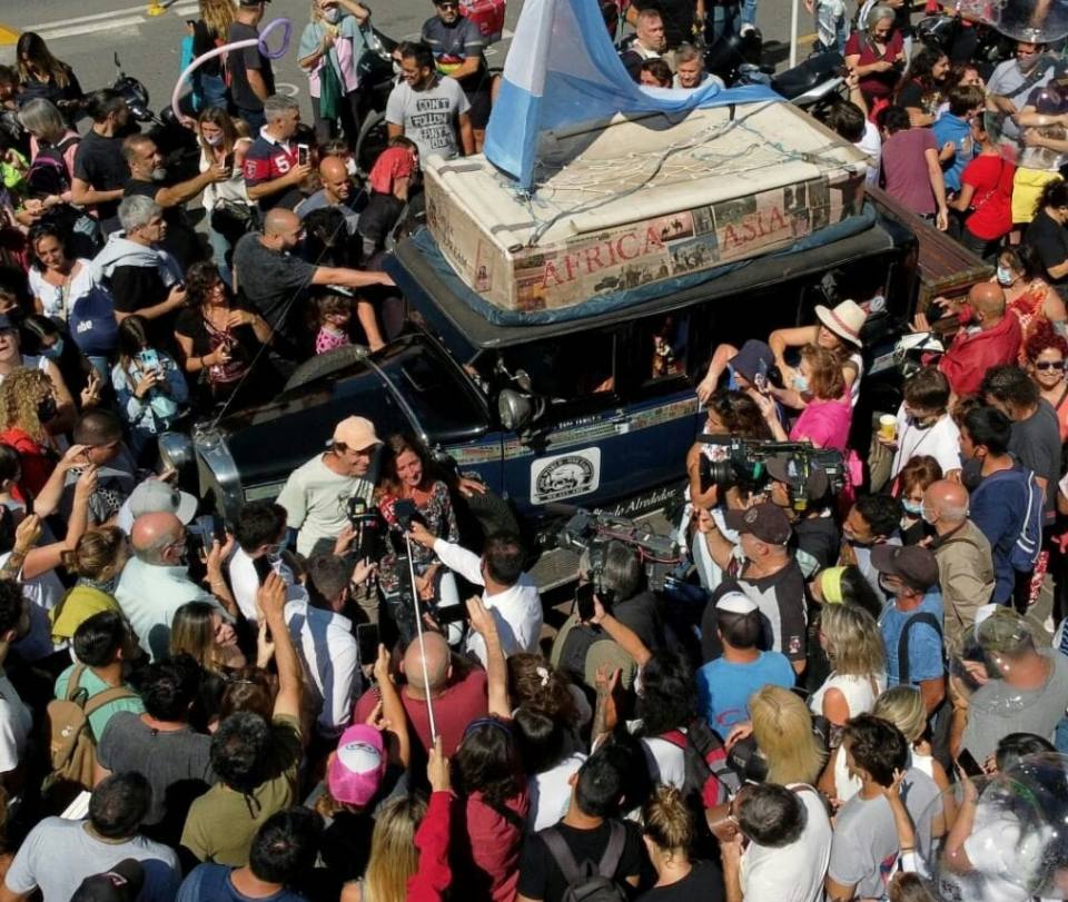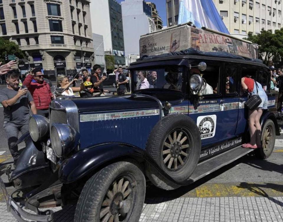 El el Obelisco la familia fue recibida por decenas de personas, con carteles, banderas argentinas y aplausos. Toda la familia arribó a la ciudad de Buenos Aires a bordo del Graham-Paige, de 1928, con el cual habían comenzado el viaje que se extendiópor más de 300.000 kilómetros.