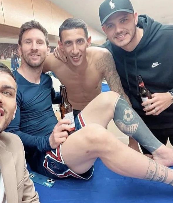 Si bien todo el equipo estaba celebrando, la Pulga tuvo su brindis personalizado con los otros jugadores argentinos: junto a Mauro Icardi y Ángel Di María expresaron su eufórica alegría por el gol que le dio el empate ante Lens y lo consagró campeón a cuatro fechas del cierre de la Ligue 1.