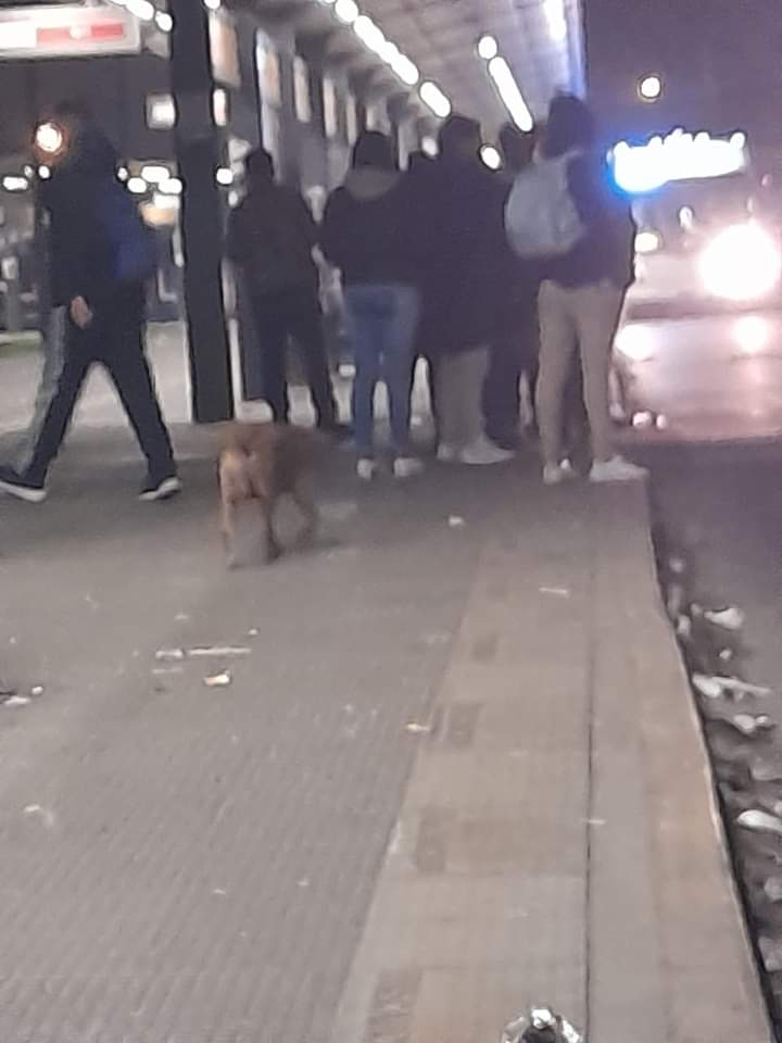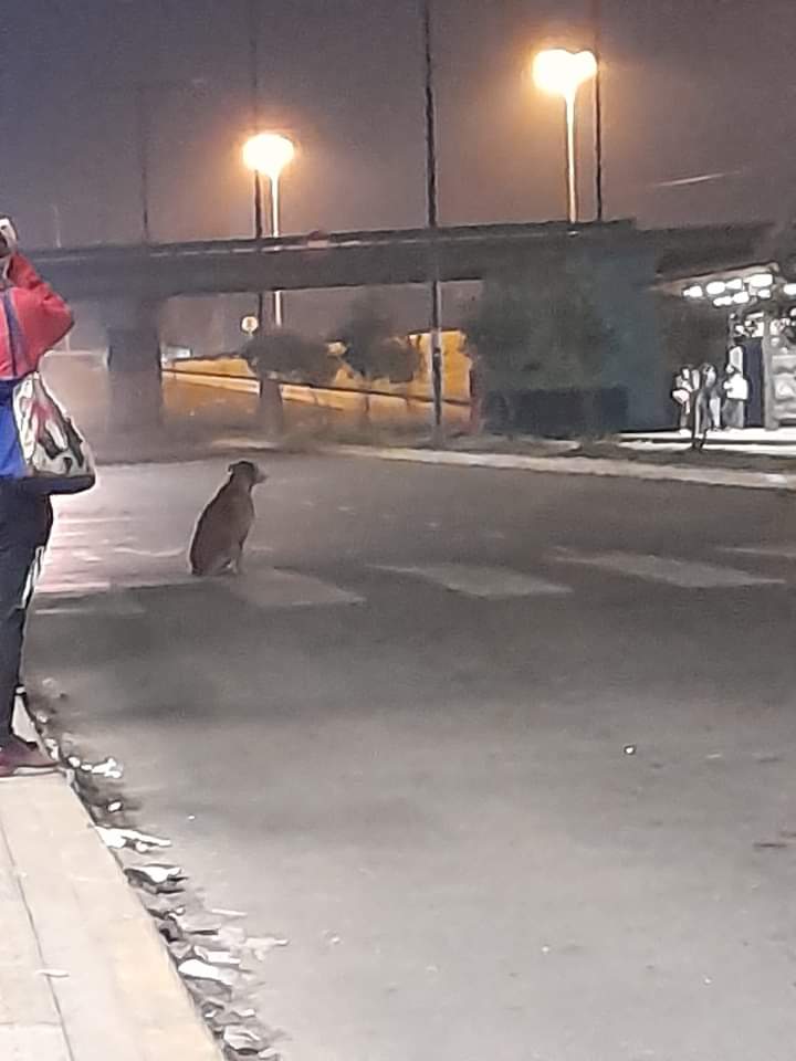 Se trata de una perra que no se sabe si está perdida o fue abandonada, pero que deambula por la cabecera del Metrobús, ubicada en el Km 29 de la ruta 3 de González Catán, partido de La Matanza.