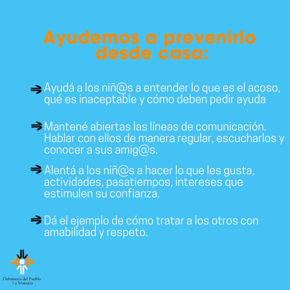 La Defensoría del Pueblo de La Matanza recordó el día internacional del Bullying y difundió una serie de recomendaciones para prevenir desde casa: