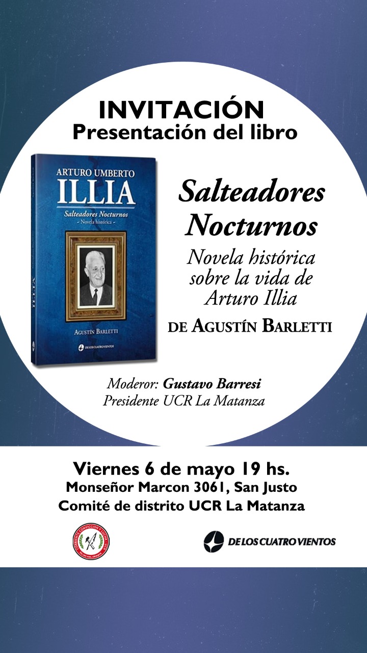 Hoy viernes 6 de mayo se realizará la presentación del libro «Salteadores Nocturnos» escrito por Agustín Barletti. La presentación contará con la moderación de Gustavo Barresi, presidente de la UCR de La Matanza.