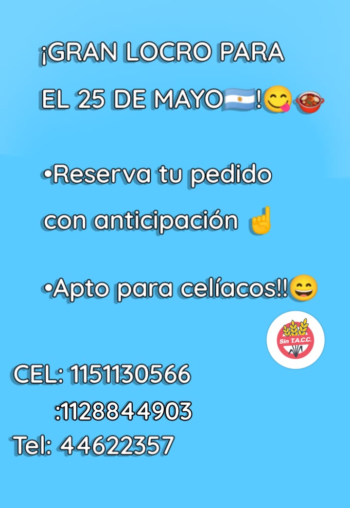 Aquellos que quieran reservar una porción y retirarlo el 25 podrán hacerlo llamando al 44622357 o enviando un mensaje de whatsapp a los siguientes números: 1151130566/1128844903.