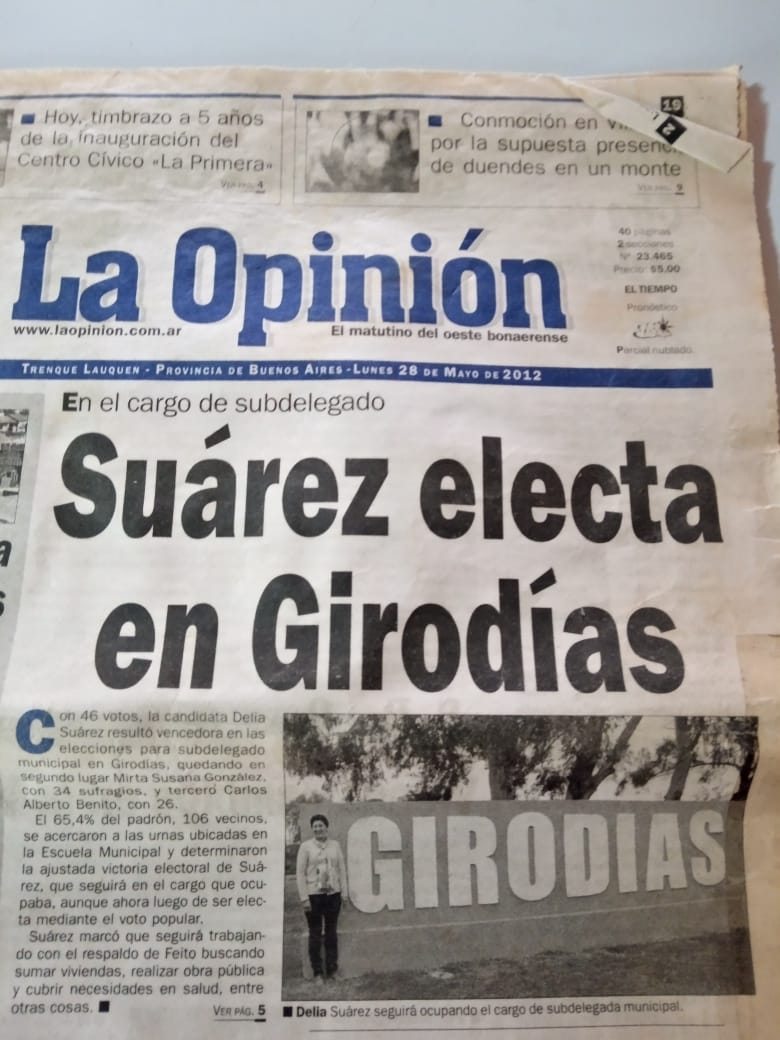 «No quiero dejar de mencionar que por estos días se cumplen 10 años de la primer elección directa de un delegado en Girodias, que fue impulsado por el intendente Raúl Fleito, y destacar que en esa oportunidad, fue electa una mujer, Delia Suárez».