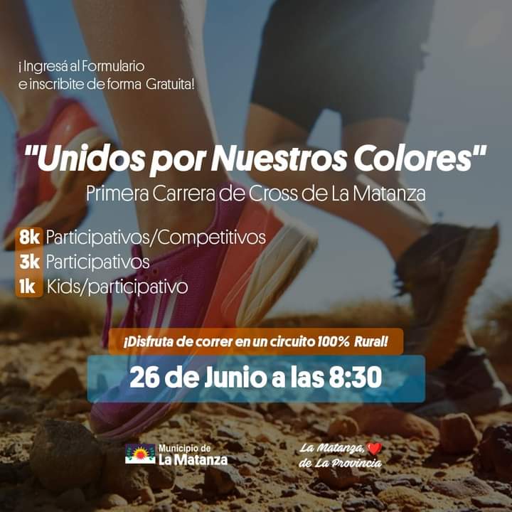 La Secretaría de Deporte de La Matanza informó sobre la llegada de la primera Carrera Cross de La Matanza: «Te invitamos a correr en las distancias de 8k, 3k y 1k en un circuito diferente ¡100% Natural!»
