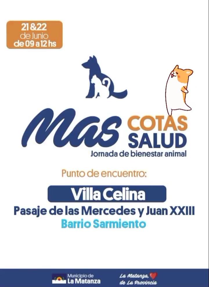 La Jornada de Bienestar Animal organizada por la Secretaría de Salud del municipio de La Matanza, se encontrará en la localidad de Villa Celina este miércoles 22 de junio.