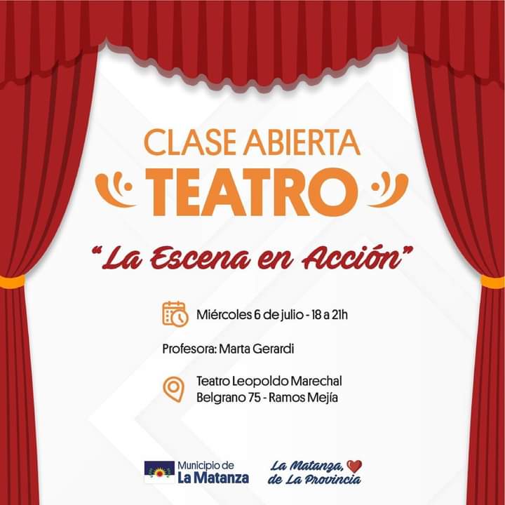 Desde la Secretaría de Cultura y Educación del Municipio de La Matanza anunciaron una clase de teatro abierta en la localidad de Ramos Mejía.