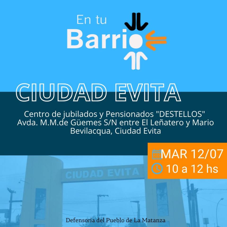 Desde la Defensoría del Pueblo del municipio de La Matanza anunciaron un operativo en la localidad de Ciudad Evita para que los vecinos puedan acercarse a consultar y resolver algunas cuestiones.