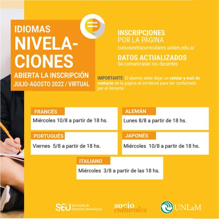 Socioculturales de la Universidad Nacional de La Matanza informaron que vuelven las inscripciones para los Cursos de Idiomas.