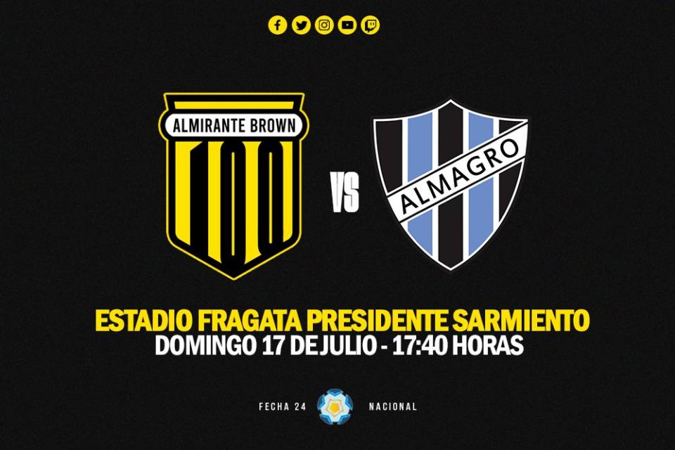 El Club Almirante Brown jugará el próximo domingo de local y recibe al Club Almagro.