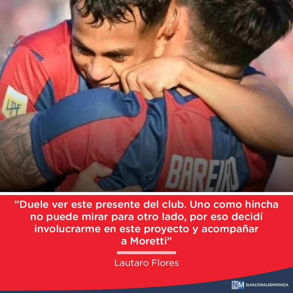 El joven dirigente, Lautaro Flores, ex candidato a Concejal de La Matanza, expresó su apoyo a la candidatura de Moretti en San Lorenzo: «Moretti es la mejor opción para levantar a este San Lorenzo que hoy está caído producto de malas gestiones políticas y contrataciones dudosas provocadas por el oficialismo actual».