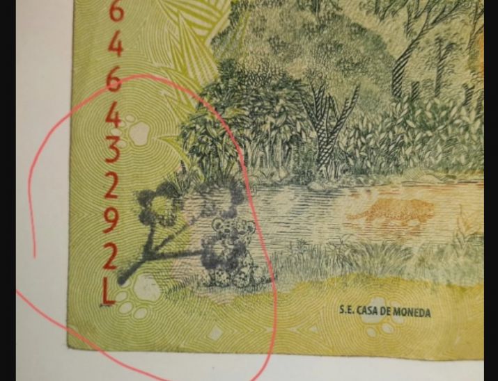 El detalle puede pasar desapercibido a simple vista, pero si hacemos zoom en la publicación podemos observar 3 flores que no corresponde con el billete en cuestión.