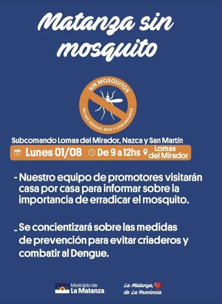 Desde la Secretaría de Salud Pública del municipio de La Matanza continúan con los operativos de prevención contra el Dengue a través del programa «Matanza sin Mosquitos».