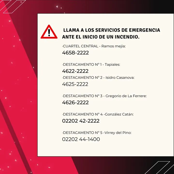Los Bomberos Voluntarios de La Matanza indicaron que es muy importante tener a mano los teléfonos y las direcciones de sus cuarteles.