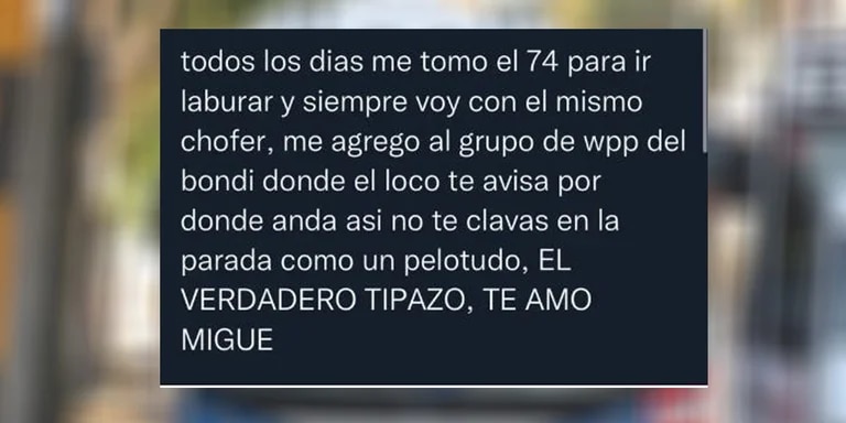 El protagonista de esta historia que se volvió viral en cuestión de horas es Miguel, es colectivero de de la línea 74, todos los días religiosamente. Resulta que este chófer armó un grupo en WhastApp para varios de los pasajeros que viajan a diario en ese recorrido.