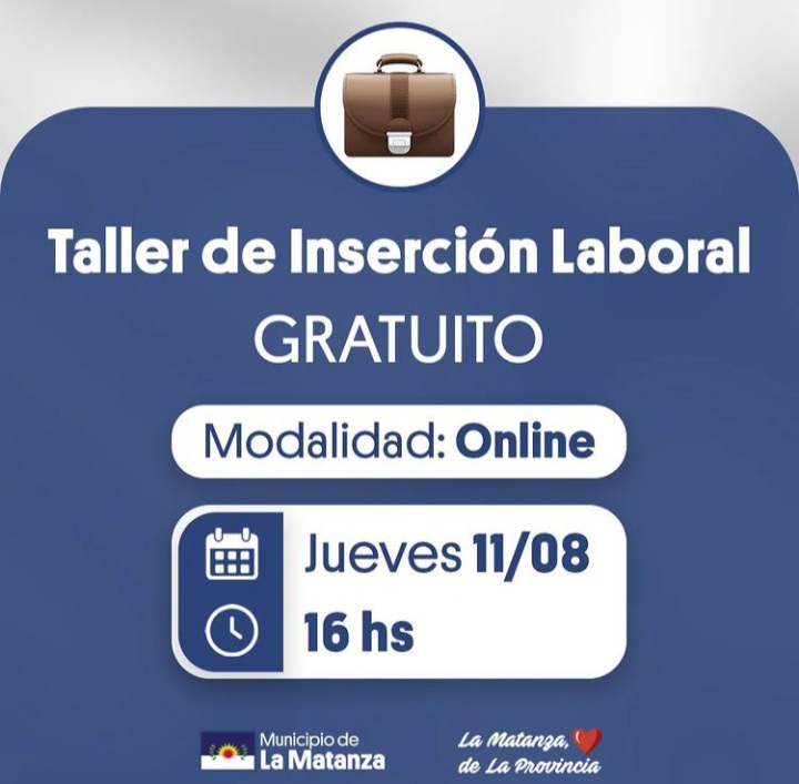 El Municipio de La Matanza informó que la Secretaría de Trabajo realizará un taller de Inserción laboral gratuito con modalidad online.