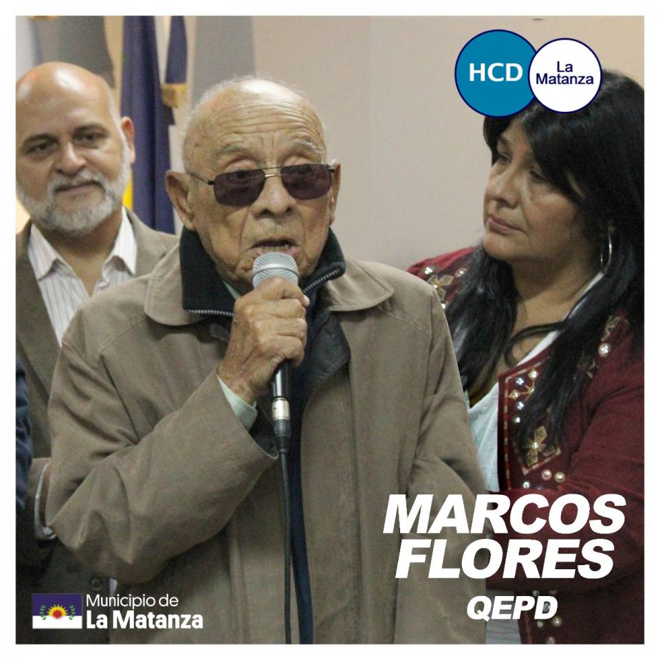 Desde el HCD, su Presidenta Liliana Pintos, Autoridades del Cuerpo, Concejales y todos sus trabajadores se expresaron al respecto: «Lamentamos la noticia del fallecimiento de Marcos Flores, un periodista integro, quien con su mirada y opinión contribuyó a la construcción de La Matanza».