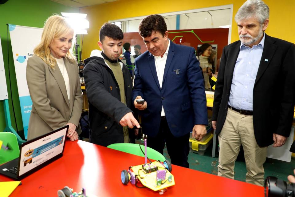 El Intendente municipal, Fernando Espinoza, junto al Ministro de Ciencia, Tecnología e Innovación de la Nación, Daniel Filmus, y la viceministra de Educación de la Nación, Silvina Gvirtz entregaron Kits de robótica a estudiantes de cuarto grado.