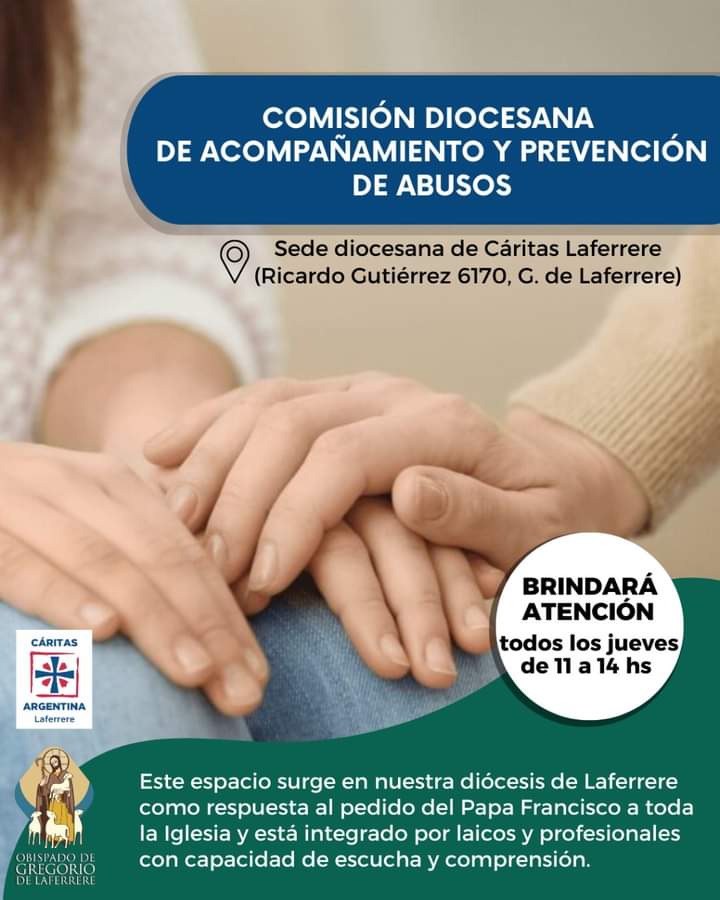 Este espacio está integrado por laicos y profesionales con capacidad de escucha y comprensión, y desde este jueves 11 de agosto, brindará atención todos los jueves de 11 a 14 hs. en el 2do. Piso de la sede diocesana de Cáritas Laferrere, ubicada en la calle Ricardo Gutiérrez 6170, localidad de Laferrere