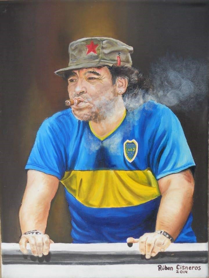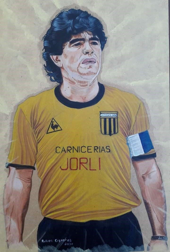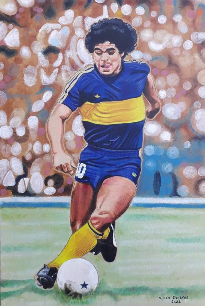 Para expresar su pasión por el entonces campeón en el Mundial juvenil de Rusia ’79, Ruben Cisneros comenzó a dibujarlo en sus cuadernos de escuela. Hoy, ya artista plástico, tiene una innumerable cantidad de obras que inmortalizan al astro en la memoria colectiva, y que acaba de organizar en una muestra itinerante. Pero además, en los últimos tiempos empezó a regalar algunos para promover la no violencia en la cancha.